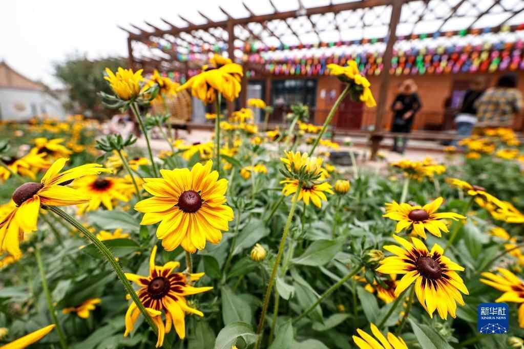 游客在宁夏吴忠市红寺堡区柳泉乡永新村的“共享庭院”里游玩(2021年10月3日摄)。新华社记者 冯开华 摄